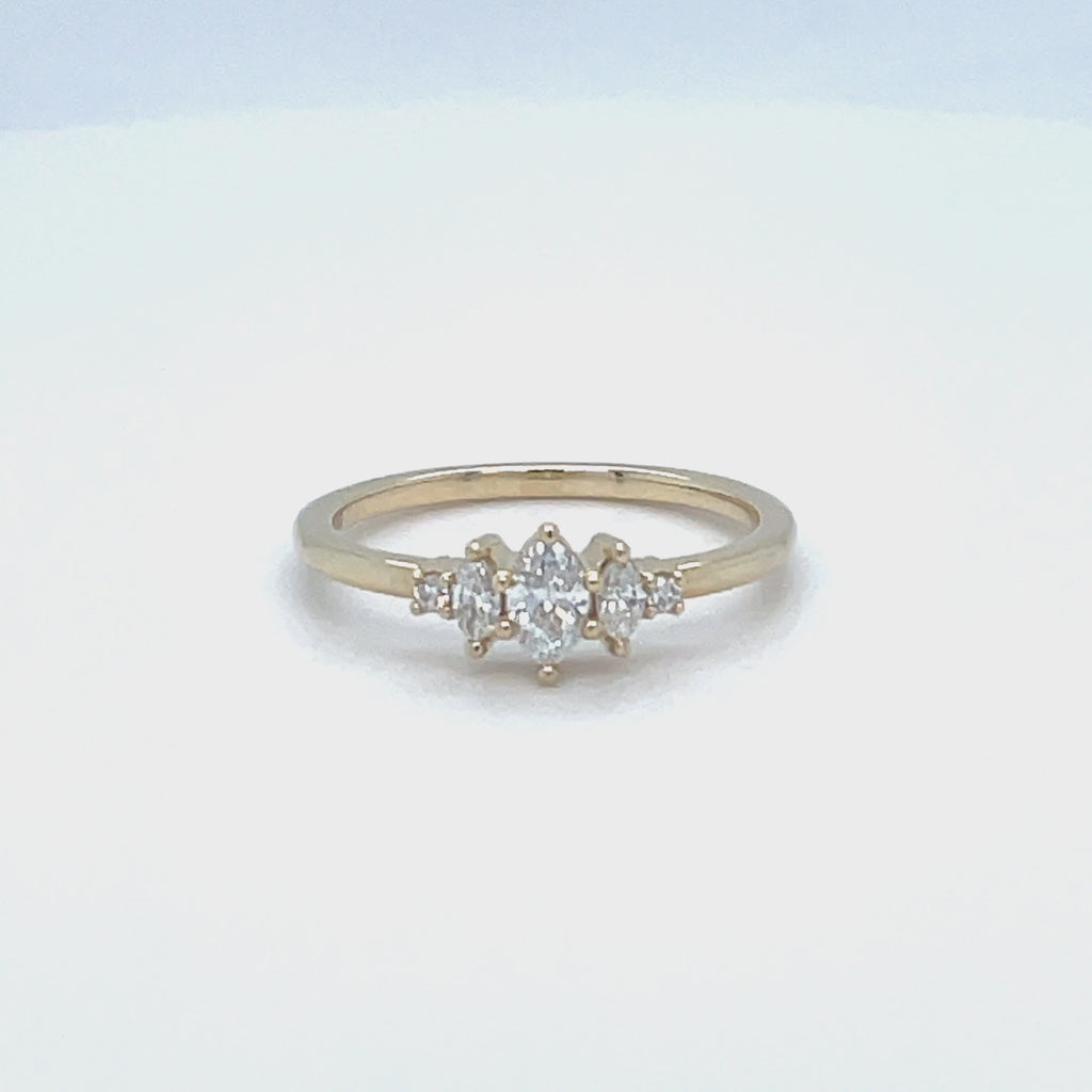 -5x3mm VS/F+ lab grown marquise diamond center.