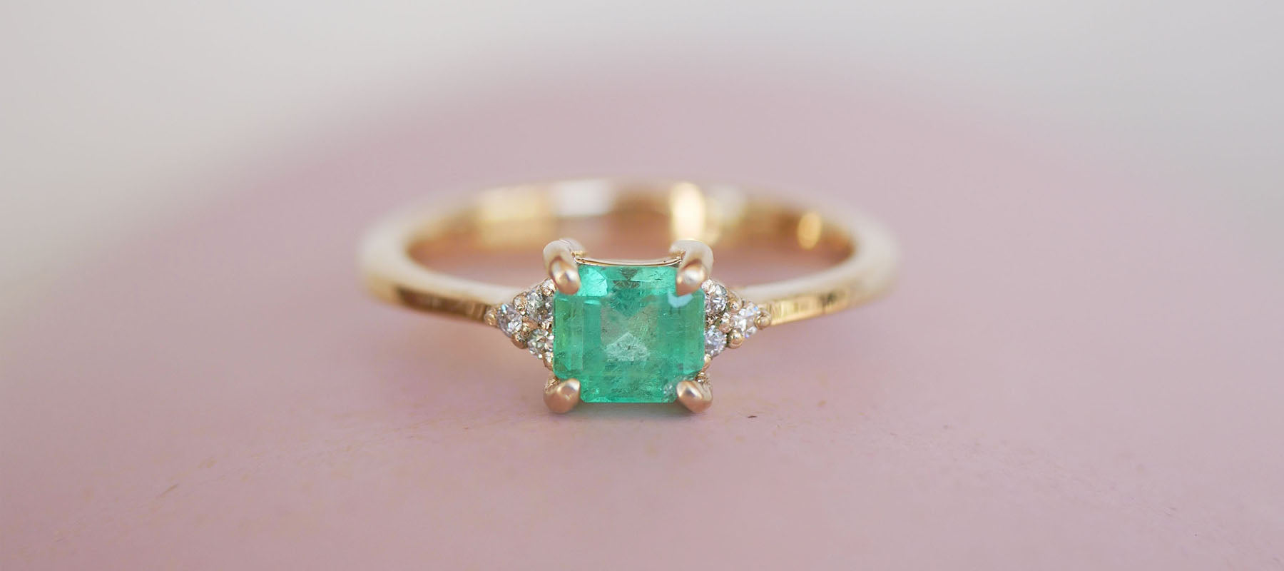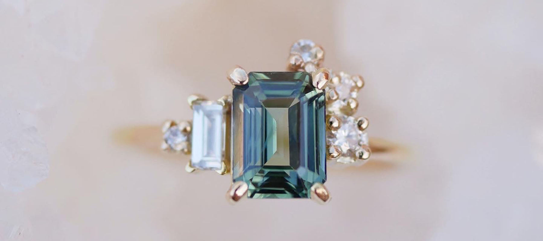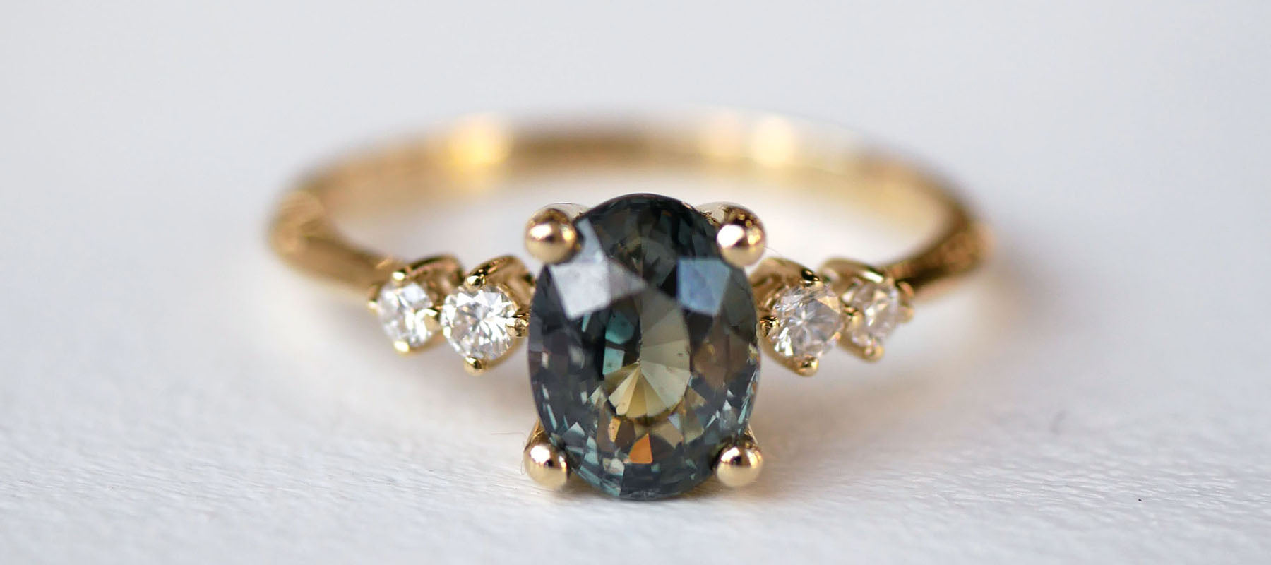 An engagement ring doesn’t have to be a diamond. In fact, most early engagement rings were emerald, ruby, or sapphire. We have also used tourmaline, morganite, sunstone, and alexandrite.