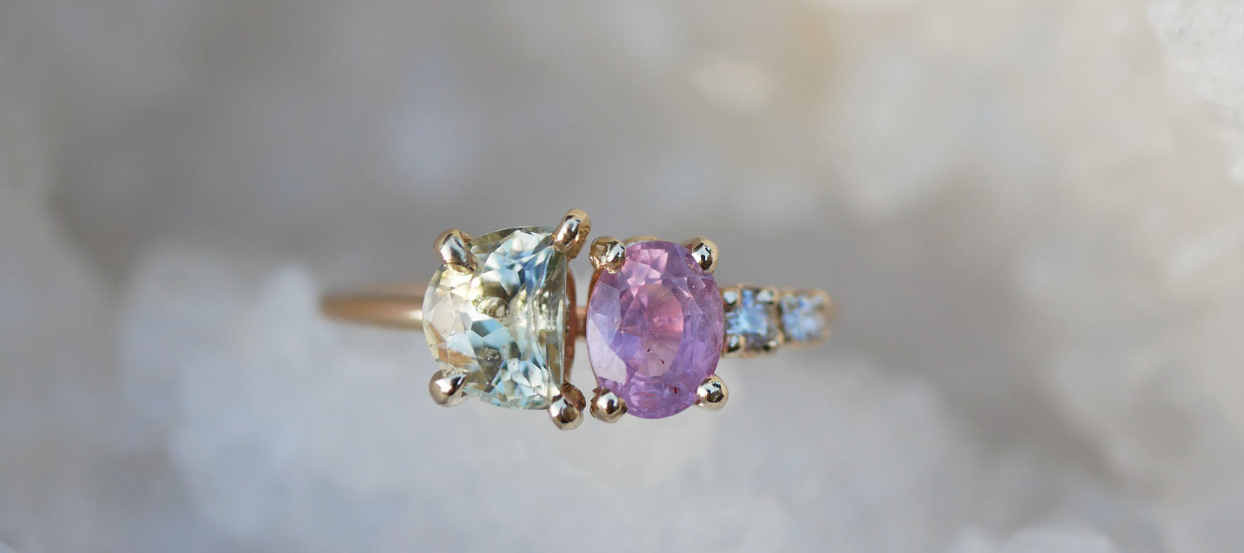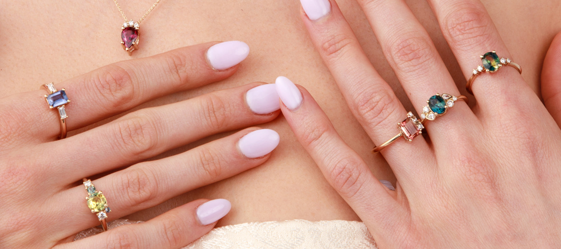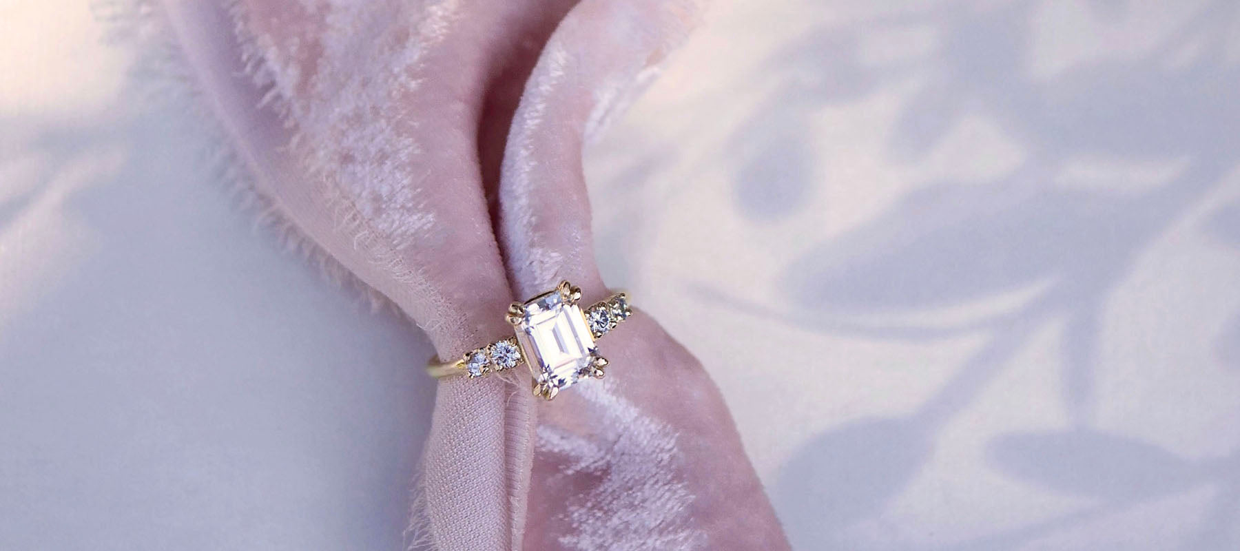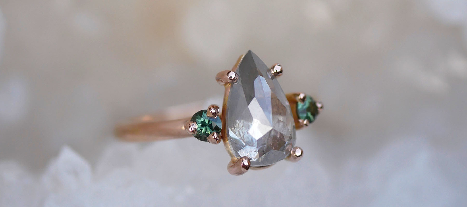 An engagement ring doesn’t have to be a diamond. In fact, most early engagement rings were emerald, ruby, or sapphire. We have also used tourmaline, morganite, sunstone, and alexandrite.