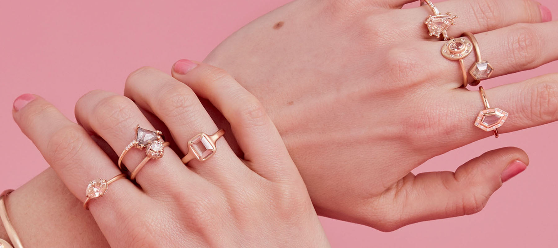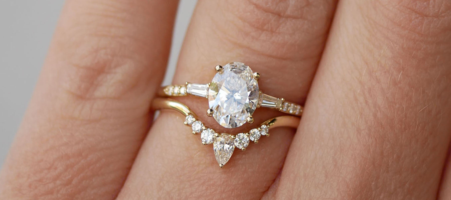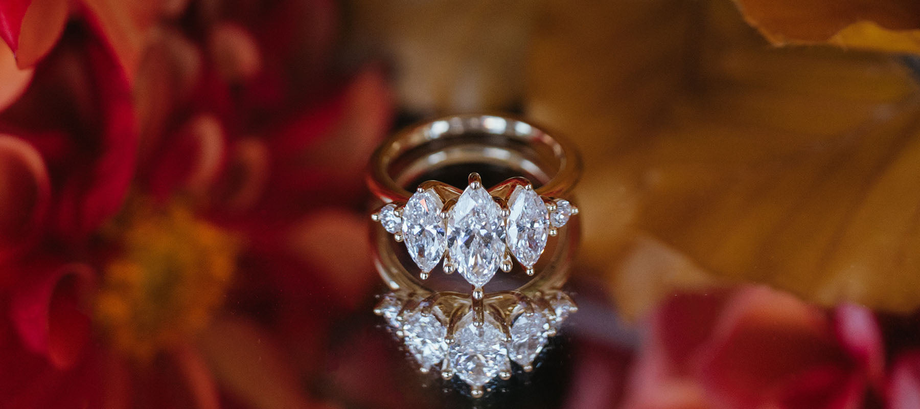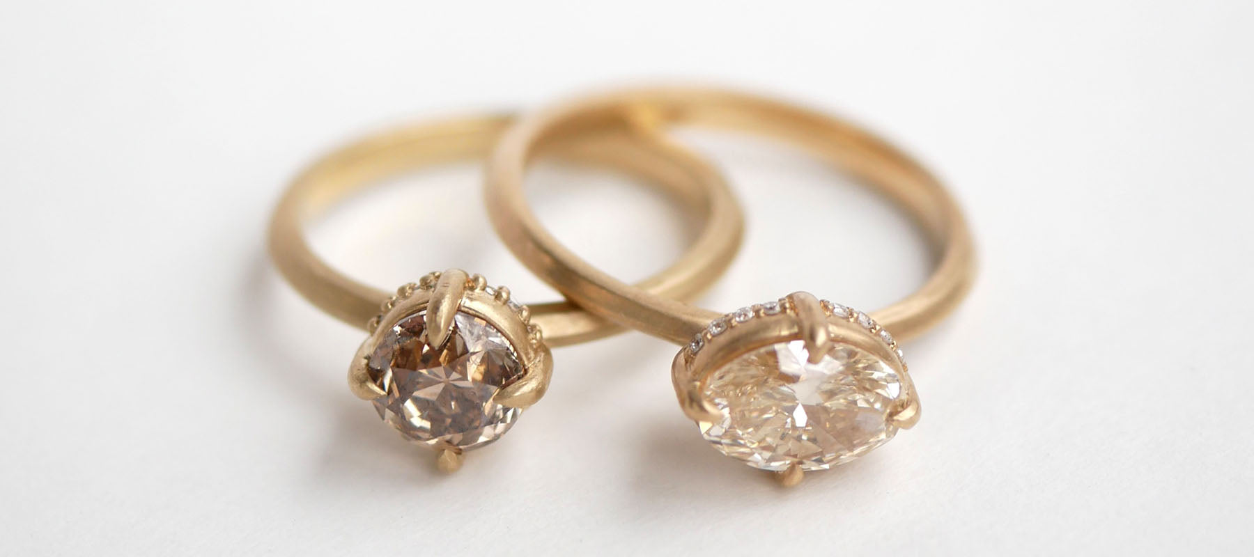 There are rose-cut, emerald cut, brilliant cut, marquise, round and oval cut for diamond, moissanite, and white sapphire! All of these stones are used to achieve that timeless white stone look. We can design simple and traditional, or add side stones, stone clusters, stacking bands and more to make it unique to you.