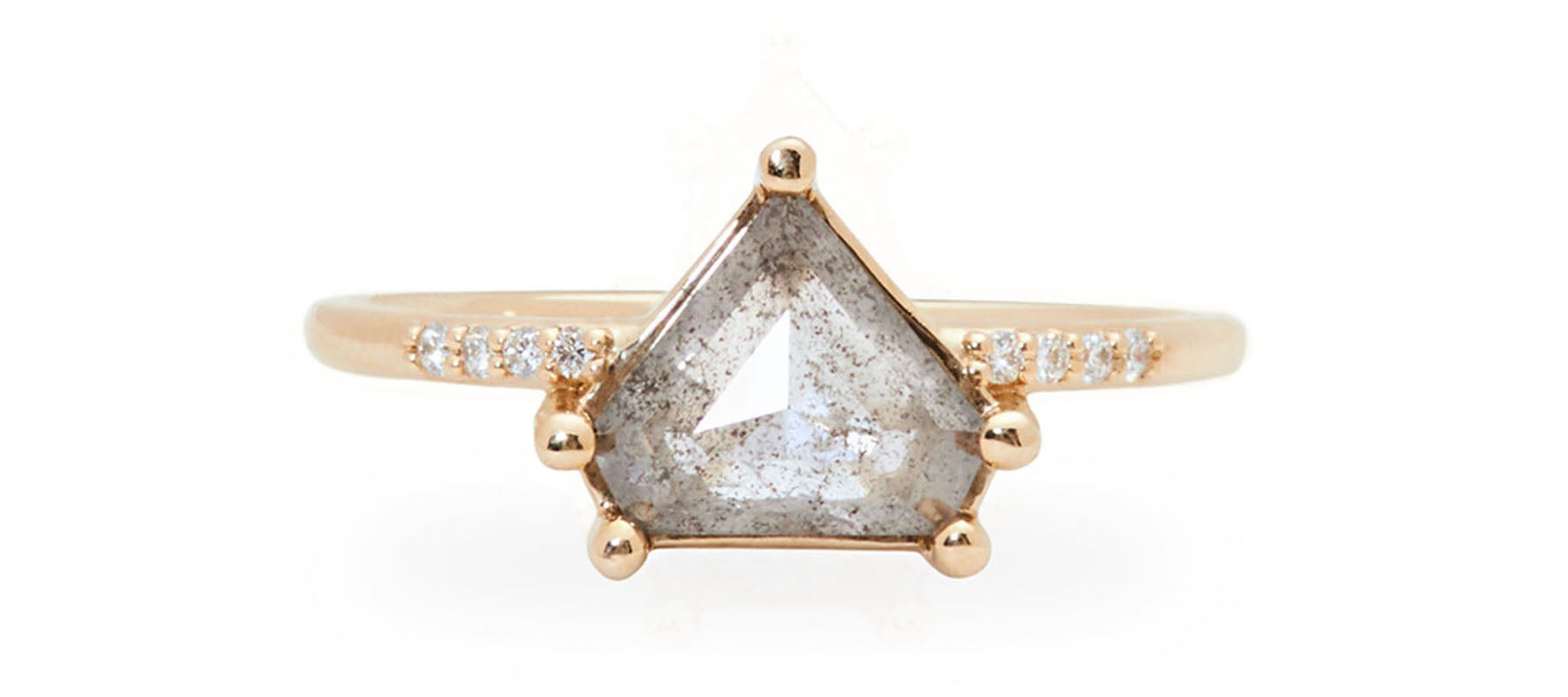 We love salt & pepper and champagne diamonds. They come in all different colors, variants and cuts that make a truly unique statement. These diamonds have what are known as “inclusions,” or black and white coloring and markings throughout the stone making no two alike.