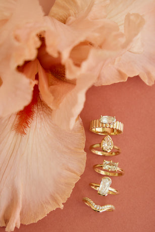 We source the highest quality stones possible in the industry from artisan gemstone cutters to certified diamond distributors. All of our purveyors follow Kimberly Process guidelines, guaranteeing responsible sourcing channels, higher standards for mining, labor and cutting practices. One of our partners, Misfit Diamonds, sources diamonds with 100% traceable origin and documented provenance straight to the mine - something extremely hard to come by in the current diamond market.